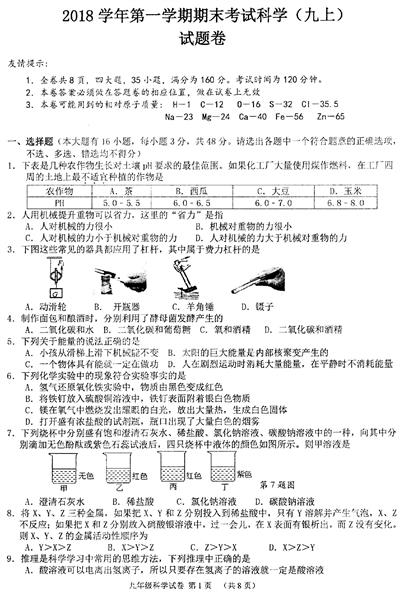 湖州市长兴县2018学年第一学期九年级期末试卷(扫描无答案)