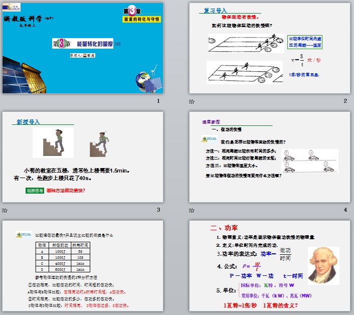 比较谁做功最快?并且说出比较的依据是什么①做功相同,比较做功的时间,时间短的做功快;功率的简单计算(P=W_t).mp4