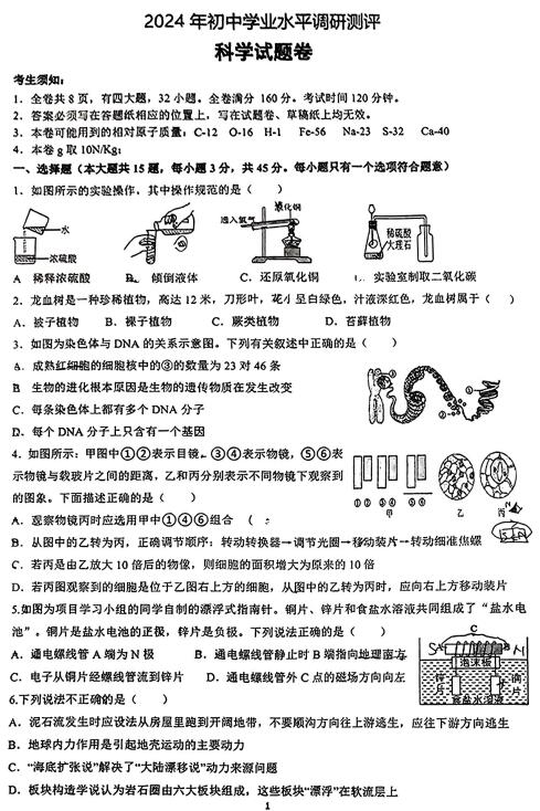 浙江省杭州市西湖区三墩中学2024年初中学业水平调研测评 科学试题卷(扫描PDF版 无答案)