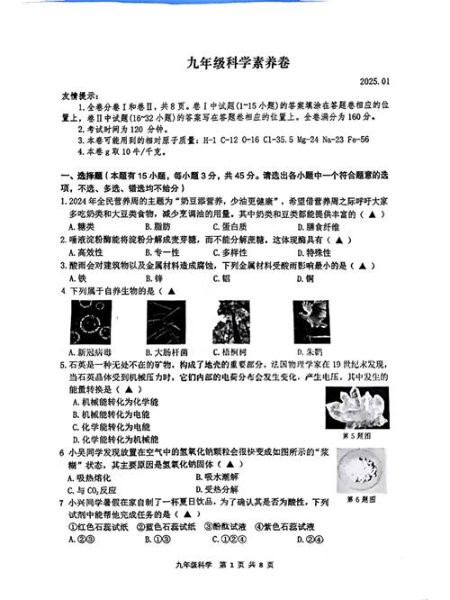 湖州市吴兴区2024学年九年级上期末试卷(扫描无答案)