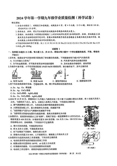 浙江省宁波江北区2024学年第一学期九上期末试卷(扫描无答案)