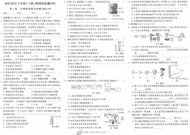 【新教材】七下周周清试卷第1章生物的结构与生殖(综合B)(扫描附答案)