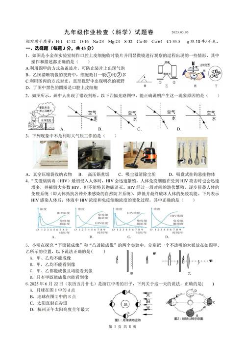 2024学年第二学期义乌稠州中学九年级3月独立作业(扫描附手写版答案)