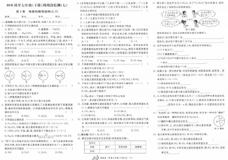 【新教材】七下周周清试卷第2章物质的微观结构(2.5)(扫描附答案)