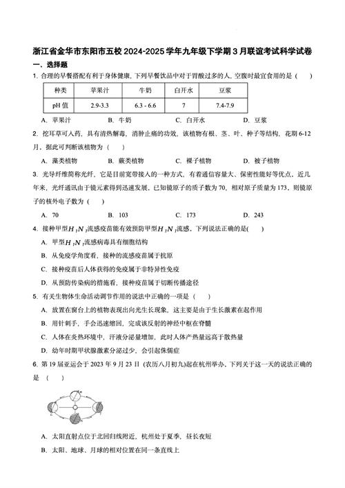 金华东阳市五校九下2024-2025学年3月联考试题(扫描附答案)