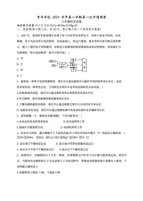 2024学年第二学期龙港市菁华学校八下科学3月月考试题(扫描无答案)