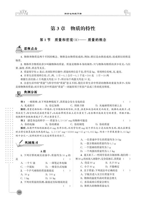 第1节 质量和密度(1)——— 质量的概念(扫描PDF版,含答案)