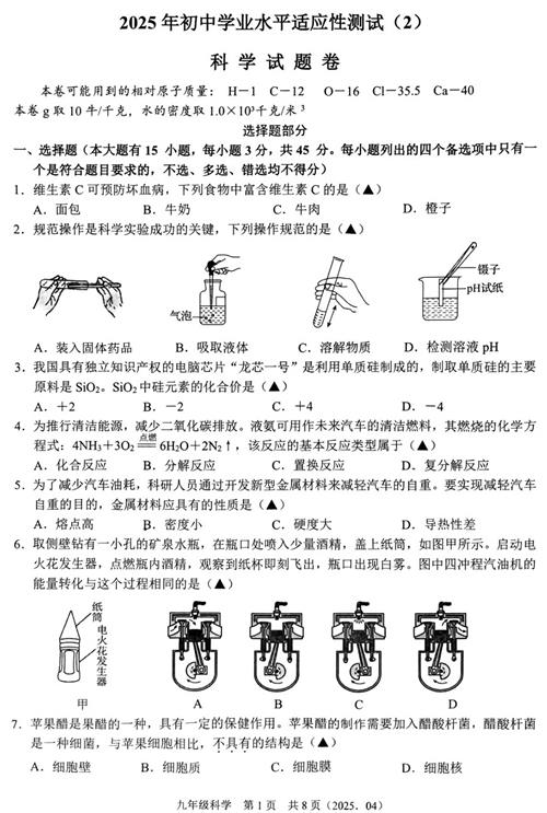 杭州市萧山区宁围初中等九下科学4月考模拟(扫描无答案)
