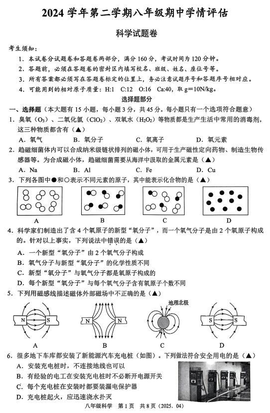 2024学年第二学期杭州临平、余杭、萧山、湖州等多校联考八年级期中卷(扫描pdf版,有答案,到第2章)