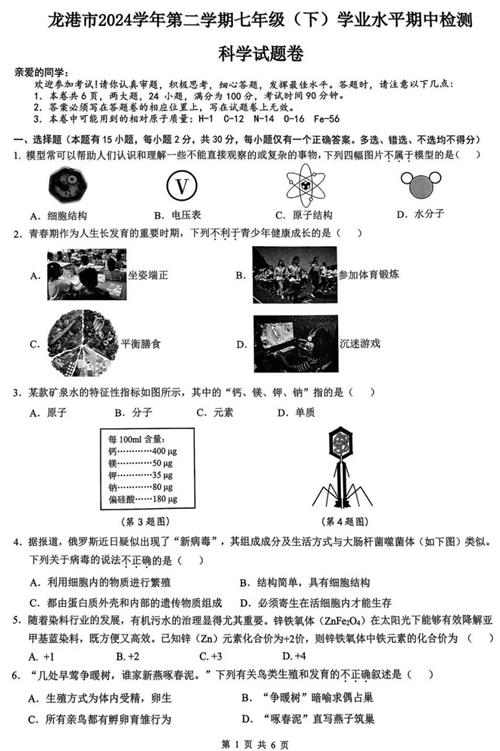 2024学年第二学期温州龙港七下期中检测(扫描无答案)