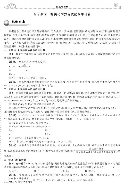 第2课时 有关化学方程式的简单计算(扫描附答案)