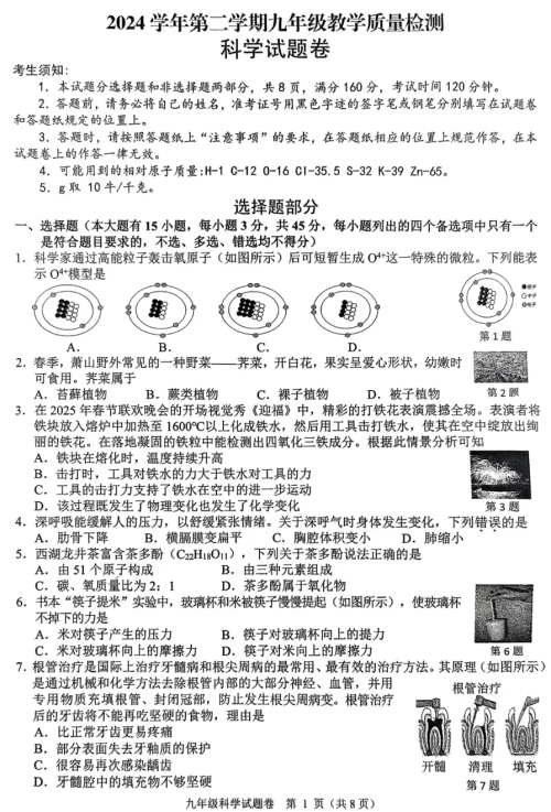 2025.5杭州萧山区一模科学卷(扫描附答案)