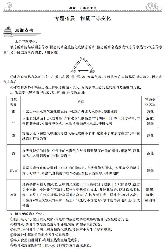 第2节 专题拓展 物质三态变化(扫描PDF版,含答案)