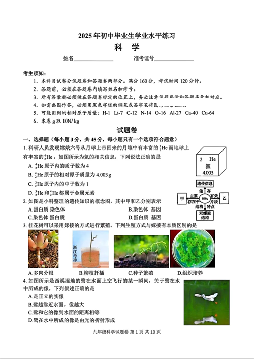 2025年5月杭州西湖区中考二模卷(清晰扫描无答案)