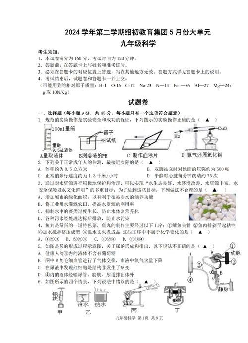 2024学年第二学期绍初教育集团5月份大单元九年级科学卷(扫描附答案)