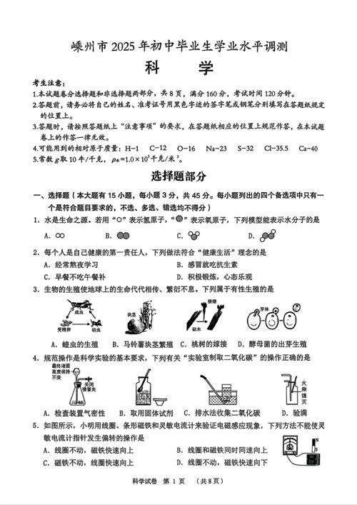 2025年5月绍兴市嵊州市中考科学二模卷(扫描附答案)