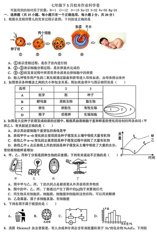 2024学年第二学期义乌市绣湖中学七下科学5月月考试题(扫描附答案)