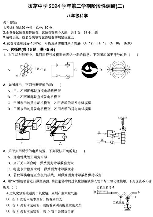 2024学年第二学期新昌县拔茅中学八下科学5月月考试题(扫描无答案)