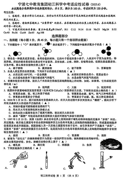 2025年6月宁波七中中考科学三模试题(扫描无答案)