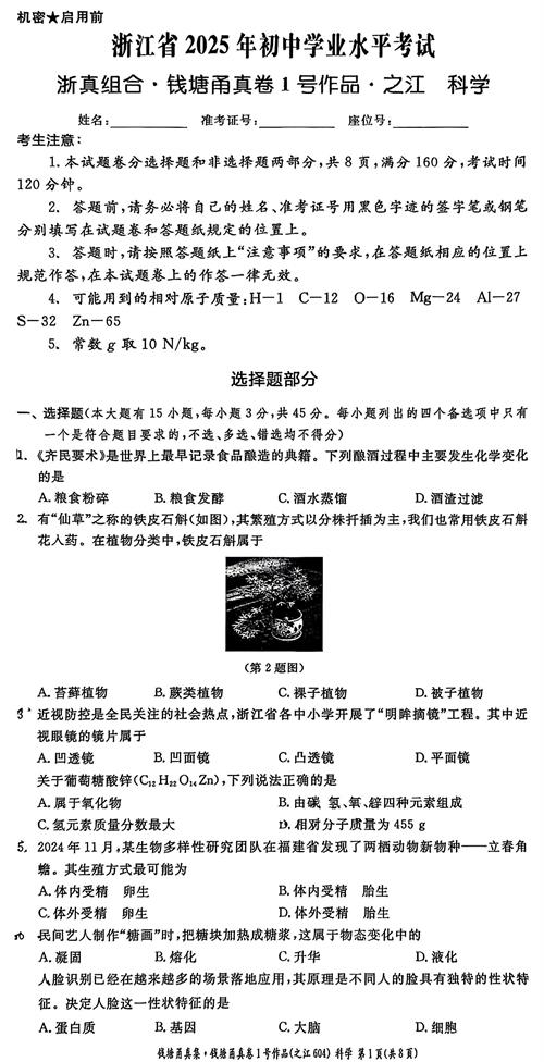 2025年6月钱塘甬真之江卷(扫描附答案)