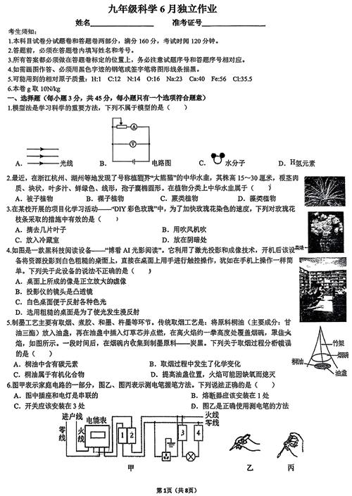 2025年杭州西湖区十三中中考科学三模试题(扫描无答案)