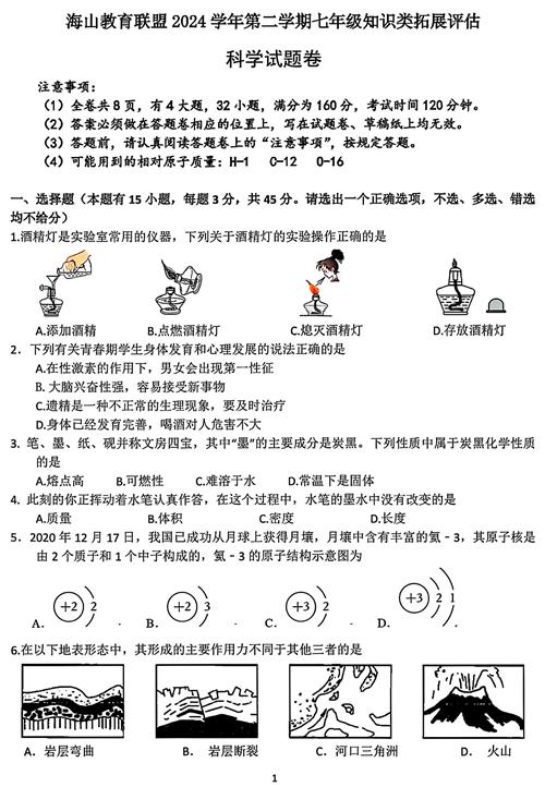 浙江省海山教育联盟2024-2025学年七年级下学期科学知识类拓展评估试题卷(扫描无答案)