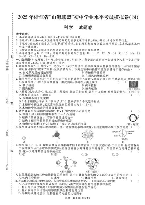 2025年6月浙江“山海联盟”初中学业水平考试模拟(四)(扫描有答案)