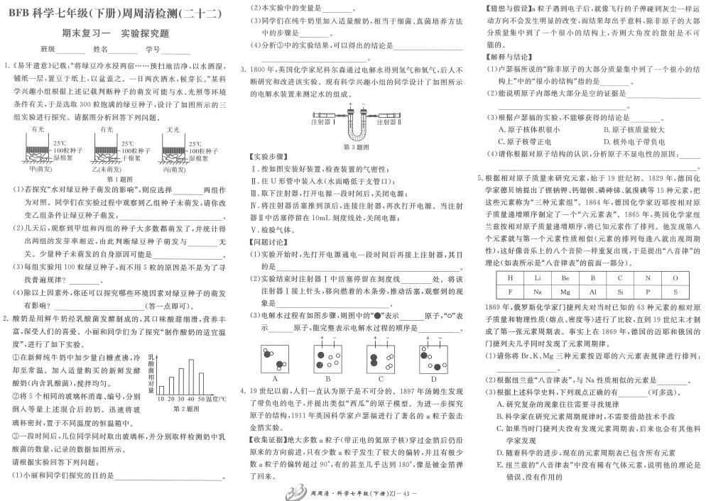 【新教材】七下周周清试卷期末复习一 实验探究题(扫描附答案)