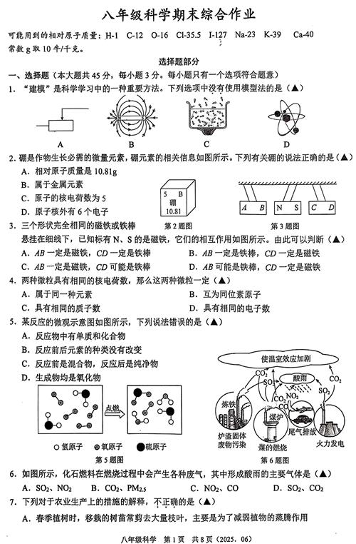2024学年第二学期八年级期末综合作业(扫描附答案)