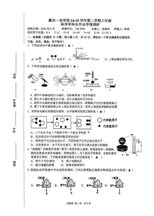 2025.6嘉兴一实学校八下科学期末模拟(扫描无答案)