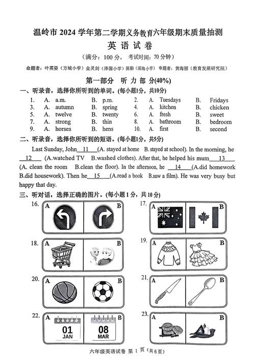 2025年温岭市小升初英语卷(扫描无答案)