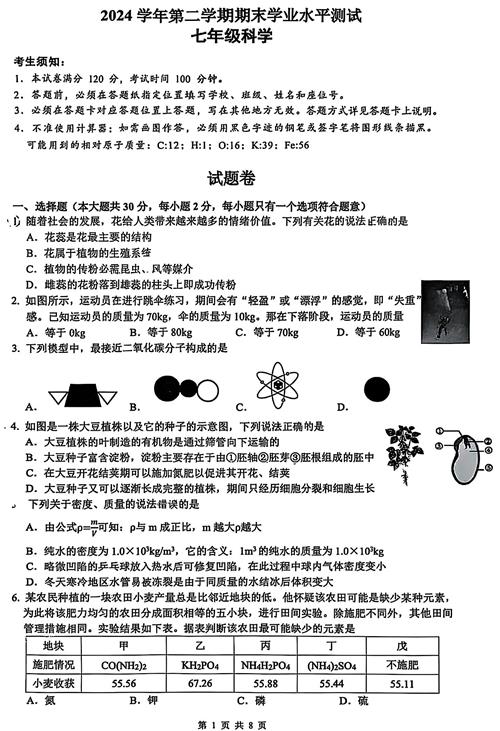 2024学年第二学期杭州滨江七年级期末试卷(扫描附答案)