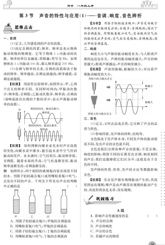 【拓展与培优】第3节 声音的特性与应用(1)--音调、响度、音色辨析(扫描pdf版,含答案)