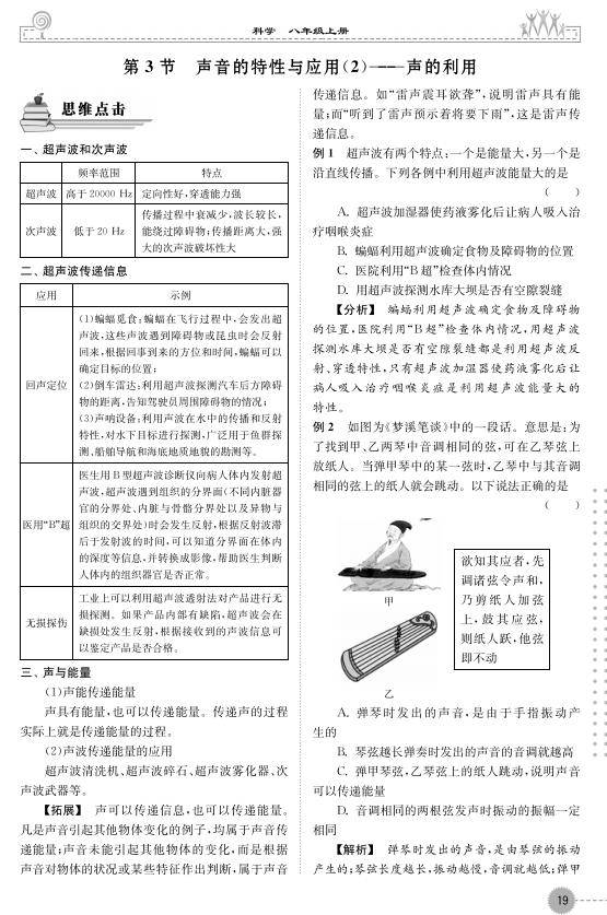 【拓展与培优】第3节 声音的特性与应用(2)--声的利用(扫描pdf版,含答案)