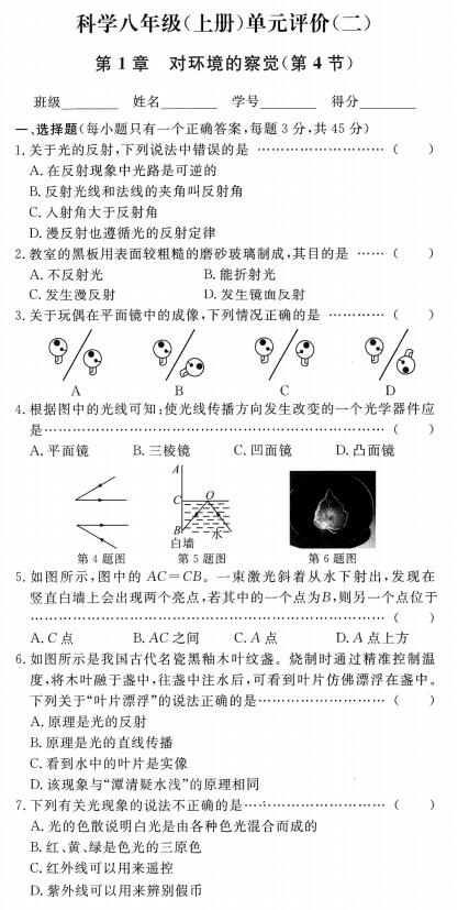 八上周周清第一章 对环境的察觉(第4节)(扫描附答案)