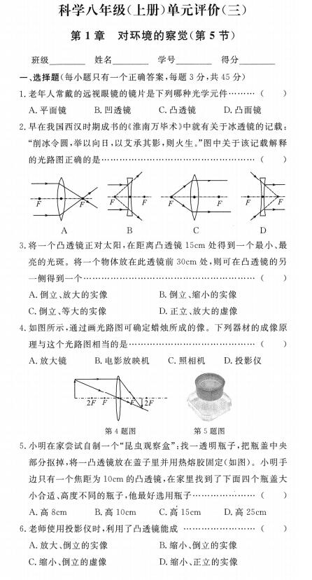 八上周周清第一章 对环境的察觉(第5节)(扫描附答案)