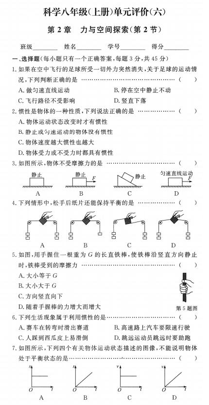 八上周周清第2章 力与空间探索(第2节)(扫描附答案)