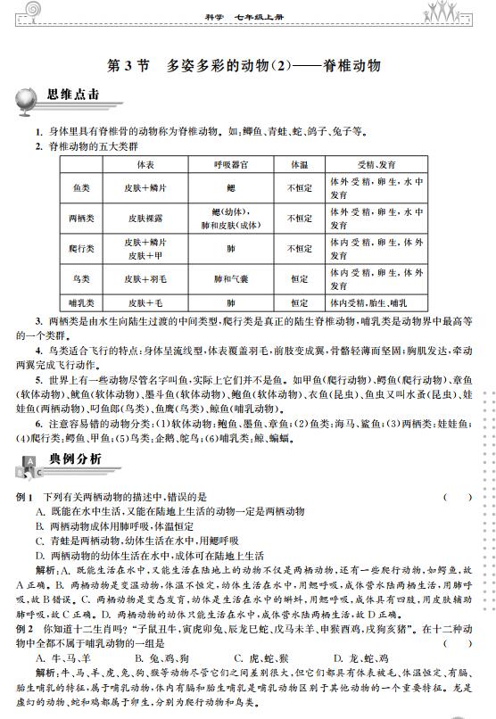 第3节 多姿多彩的动物(2)———脊椎动物(扫描pdf版,含答案)