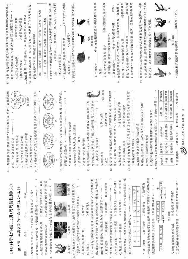 周周清检测七年级上第2章 丰富多彩的生命世界(2.2~2.3)(扫描附答案)