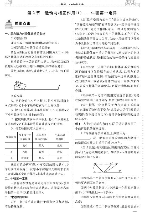 第2节 运动与相互作用(1)--牛顿第一定律(扫描pdf版,含答案)