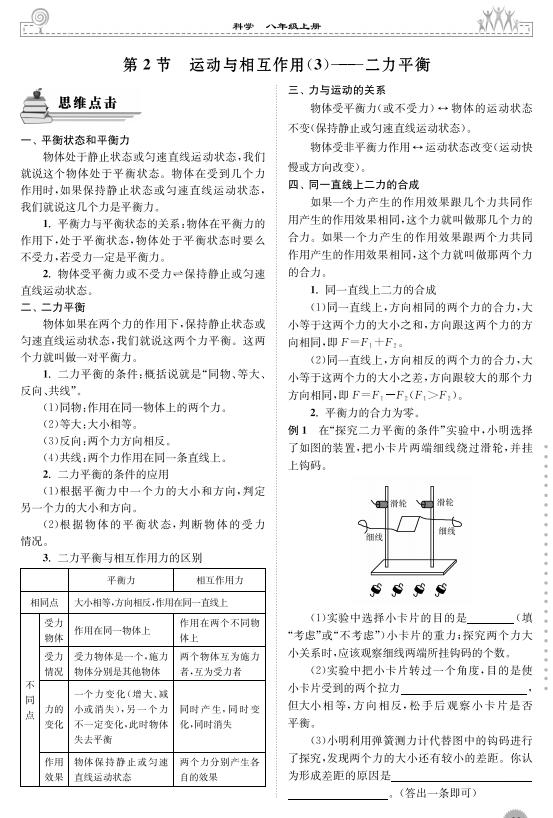 【拓展与培优】第2节 运动与相互作用(3)--二力平衡(扫描pdf版,含答案)