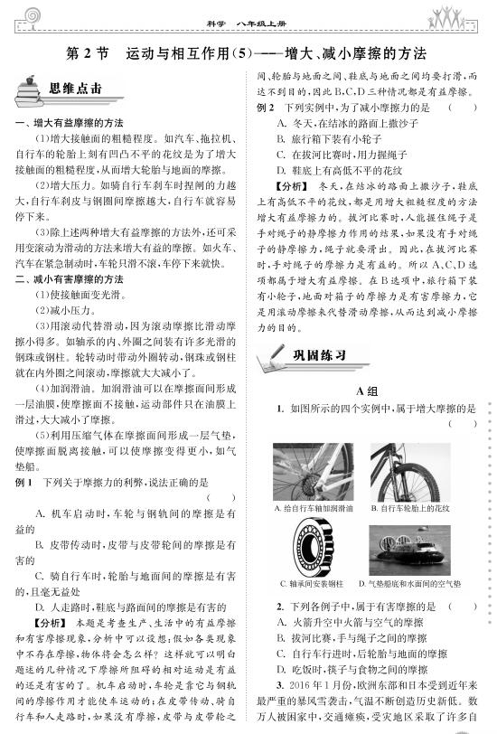 【拓展与培优】第2节 运动与相互作用(5)--增大、减小摩擦的方法(扫描pdf版,含答案)