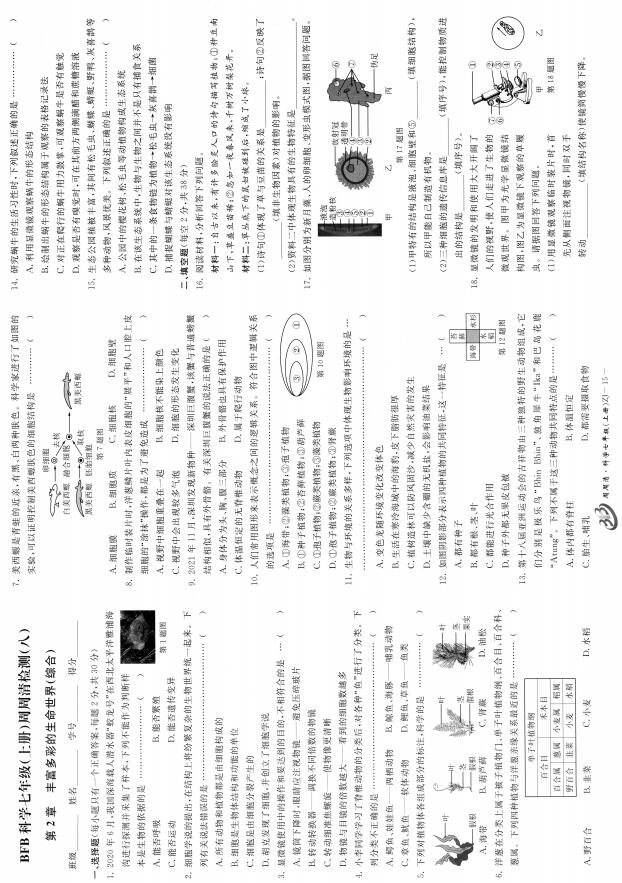 周周清检测七年级上第2章 丰富多彩的生命世界(扫描附答案)