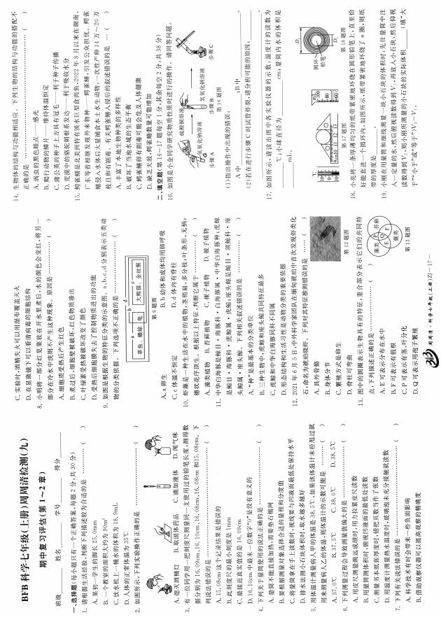 周周清检测七年级上期中复习评估(第1~2章)(扫描附答案)