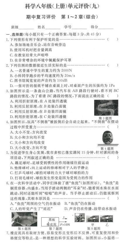 八上周周清期中测试卷(第1~2章)(扫描附答案)