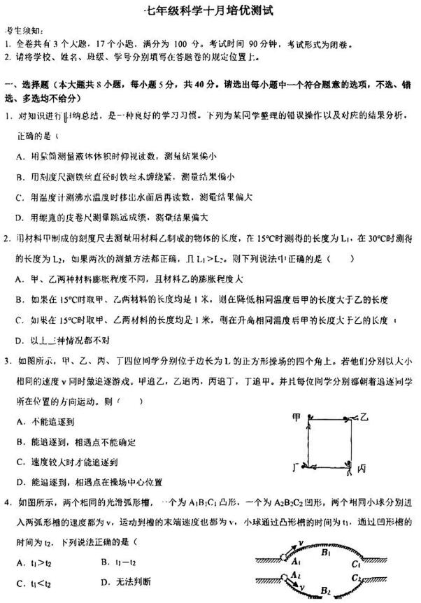 浙江省宁波市青藤书院2025学年七年级科学十月培优测试(胶版PDF,无答案)