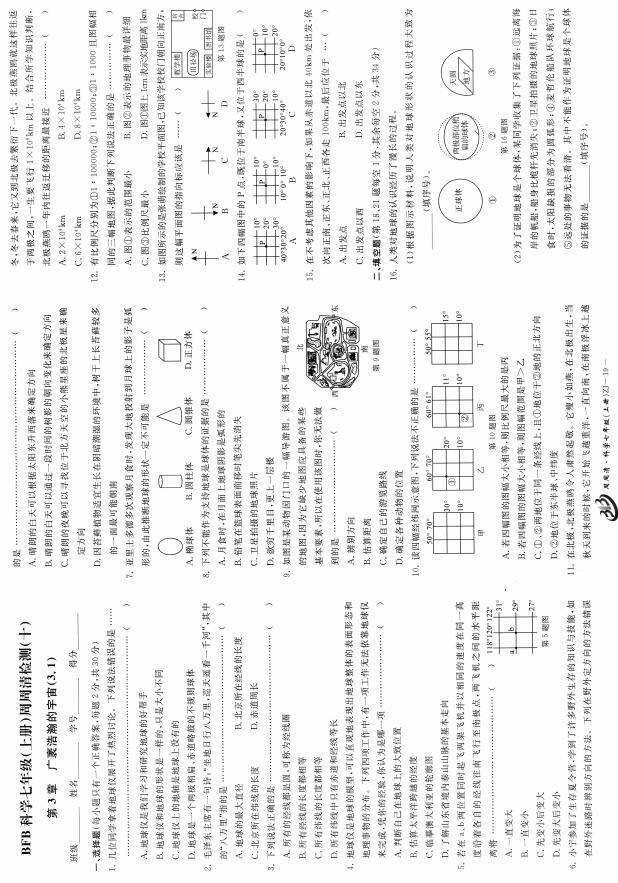 周周清检测七年级上 第3章广袤浩瀚的宇宙(3.1)(扫描附答案)