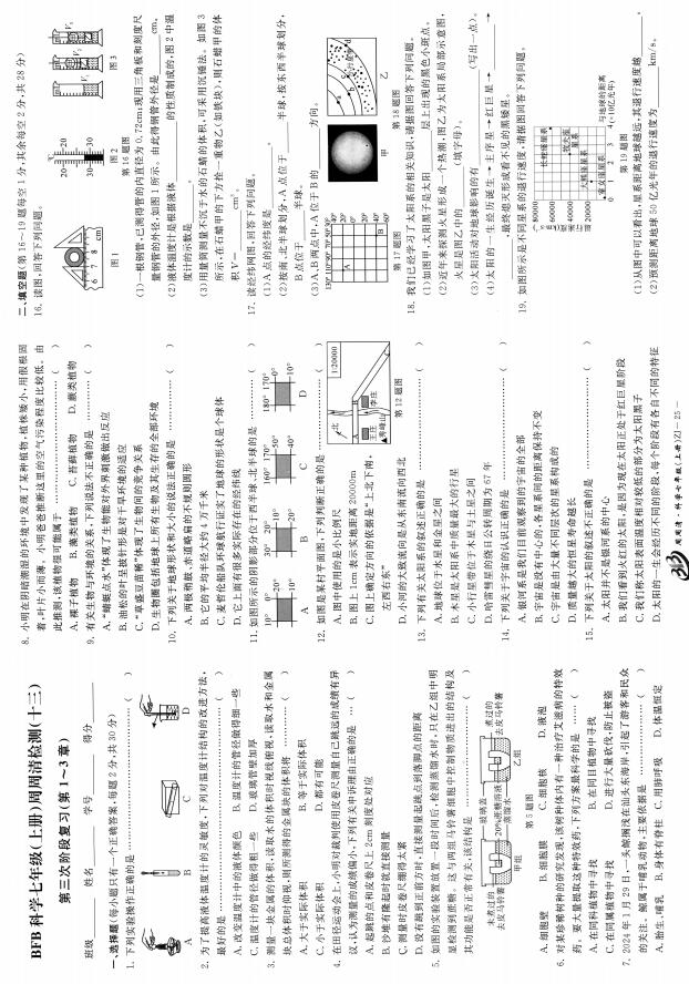 周周清检测七年级上第三次阶段检测(1~3章)(扫描附答案)
