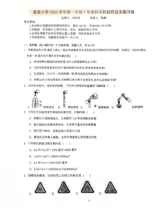 景苑中学2025学年第一学期7年级科学阶段性过关练习卷(扫描无答案)