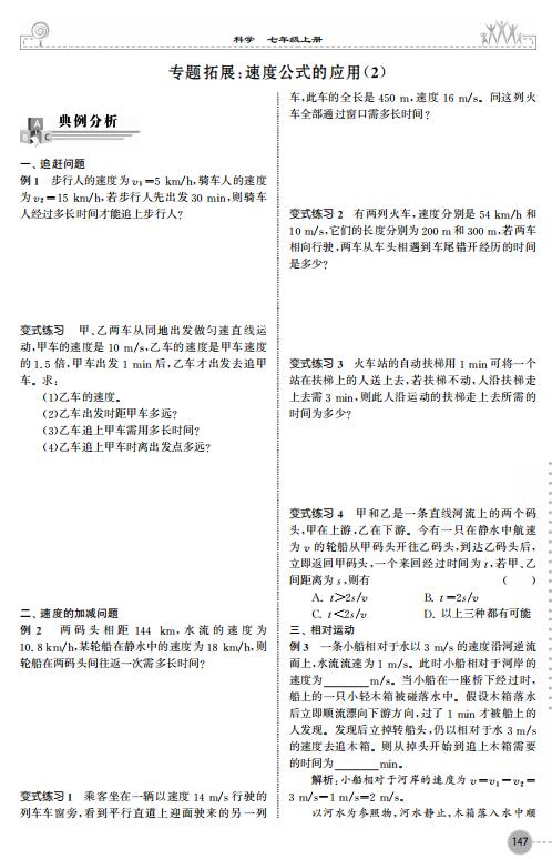 专题拓展 速度公式的应用(2)(扫描pdf版,含答案)